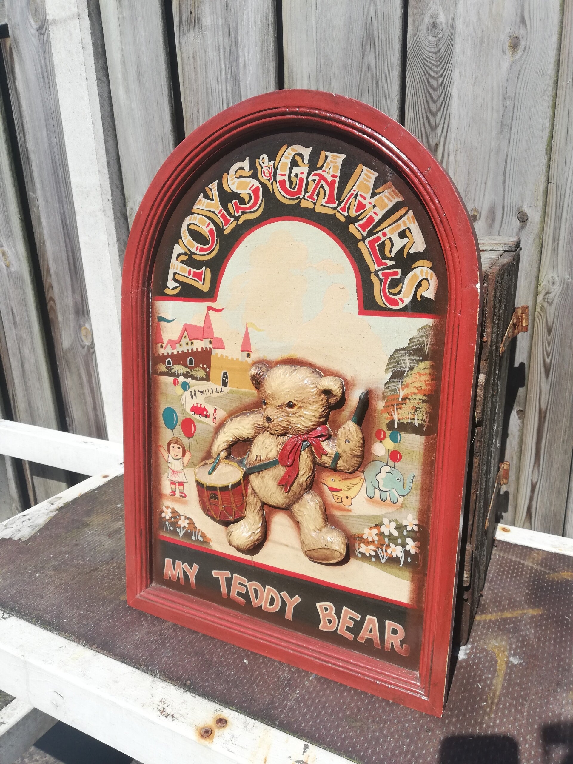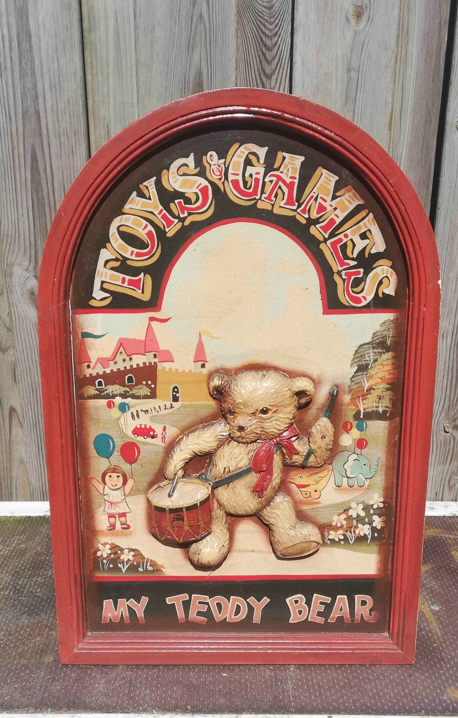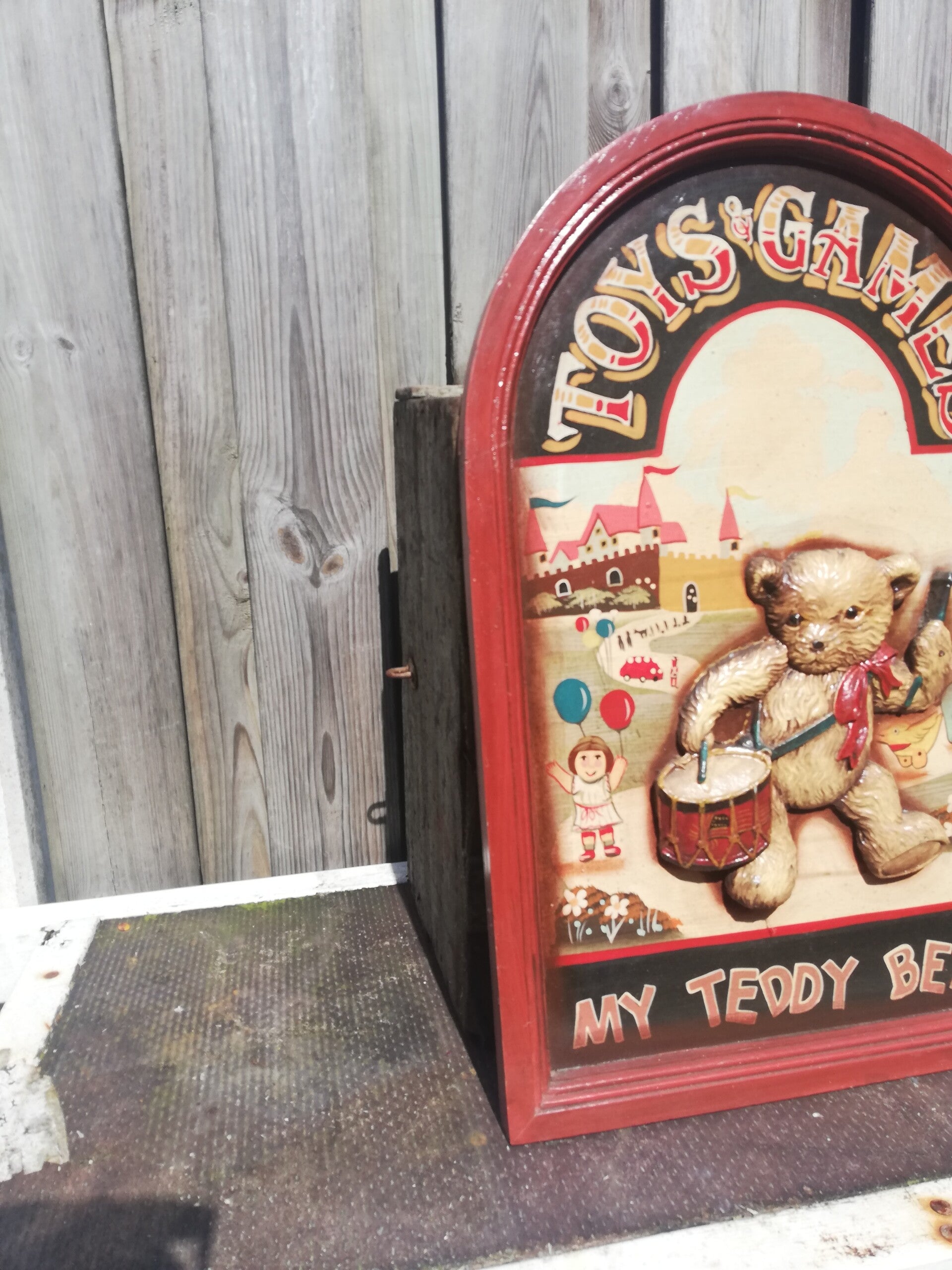 Het is een reclame bord voor speelgoed en game.