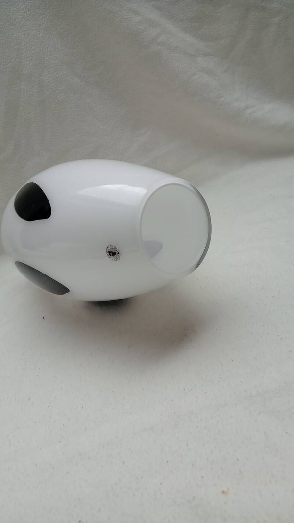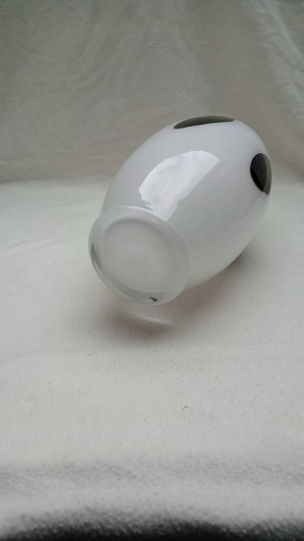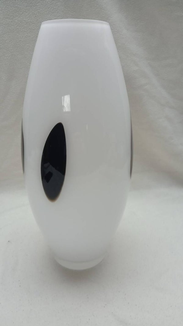 Zwarte Witte Vaas.Gemaakt van Kristal.Handgemaakt.Hoog: 347 mm.Doorsnede:85 mmGewicht: 1515 gStaat: erg mooi