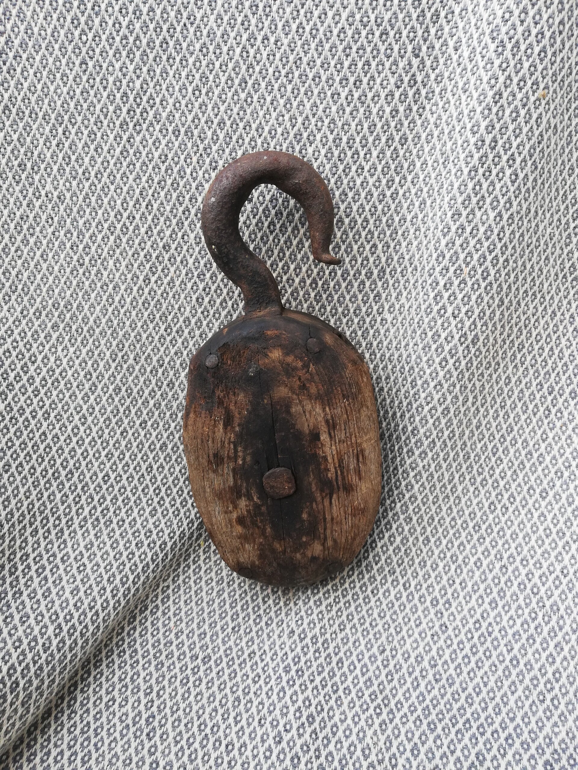 Hijsblok dit blok werd aan de vracht bevestigt om het op tetakelen.
