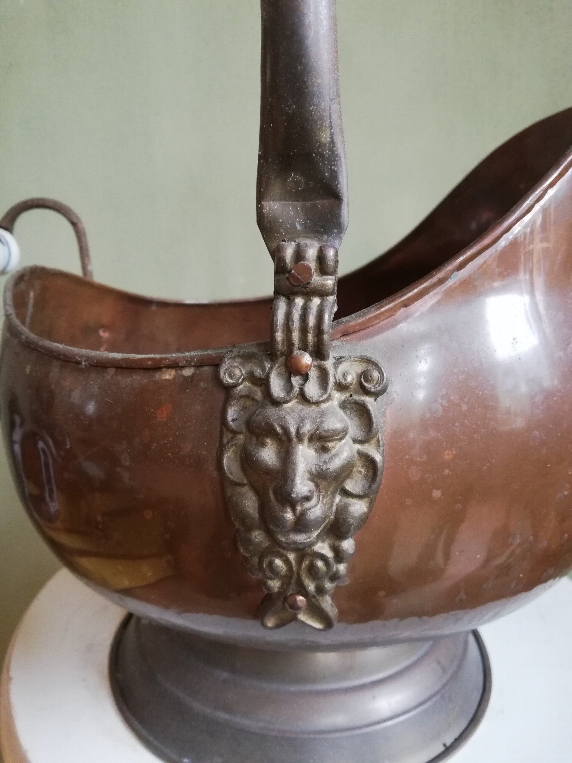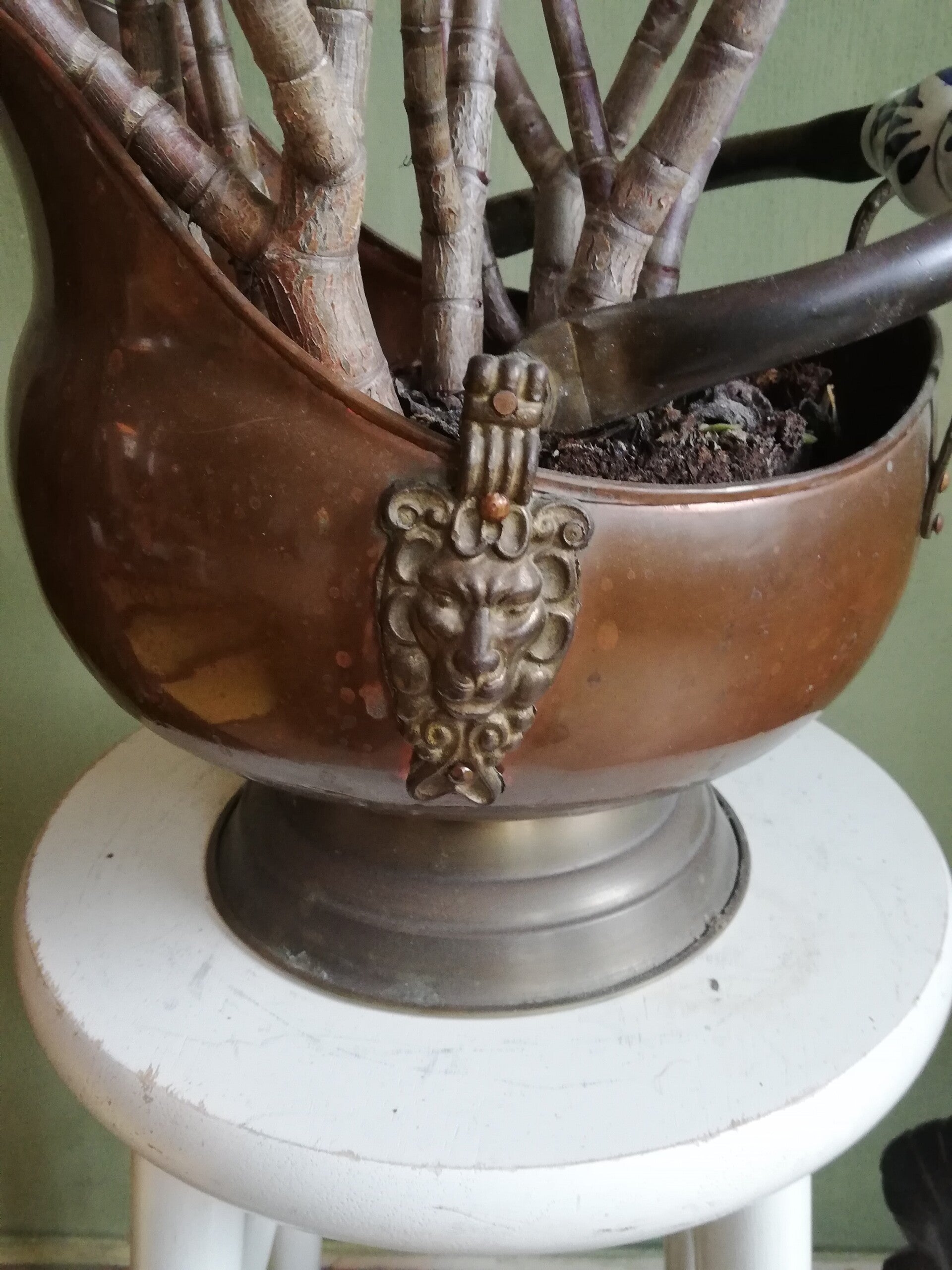 Een koperen houtbak/kolenkit.