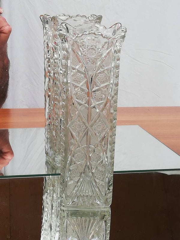 Vaas is 21 cm hoog en 6 bij 6 dus vierkant.