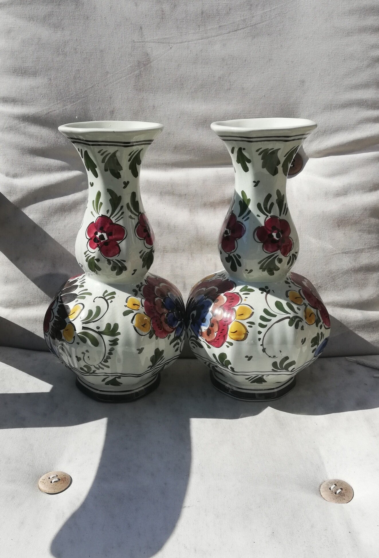 Dit zijn Delfts ze vazen die meerkleurig werden beschilderd.