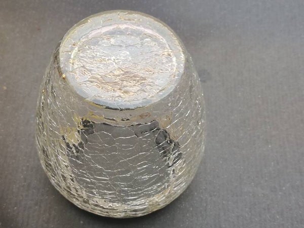 Lepel vaasje van gebroken glas effect.Lichtje heeft een zilveren randje.Hoogte 7 cm .Doorsnede 6,5 cmIn goede staat.Verzendkosten 6,75