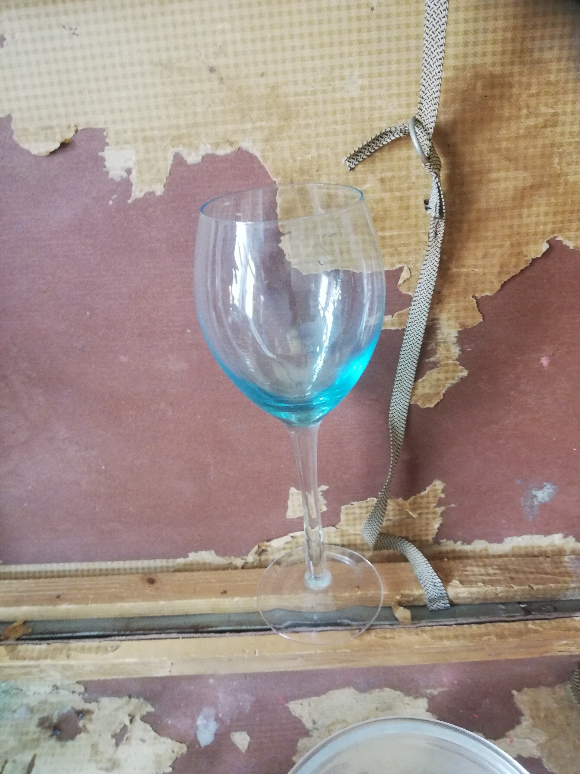 2 Mooie gekleurde wijn glazen blauw en geel 22 cm hoog. Prijs 8,00
