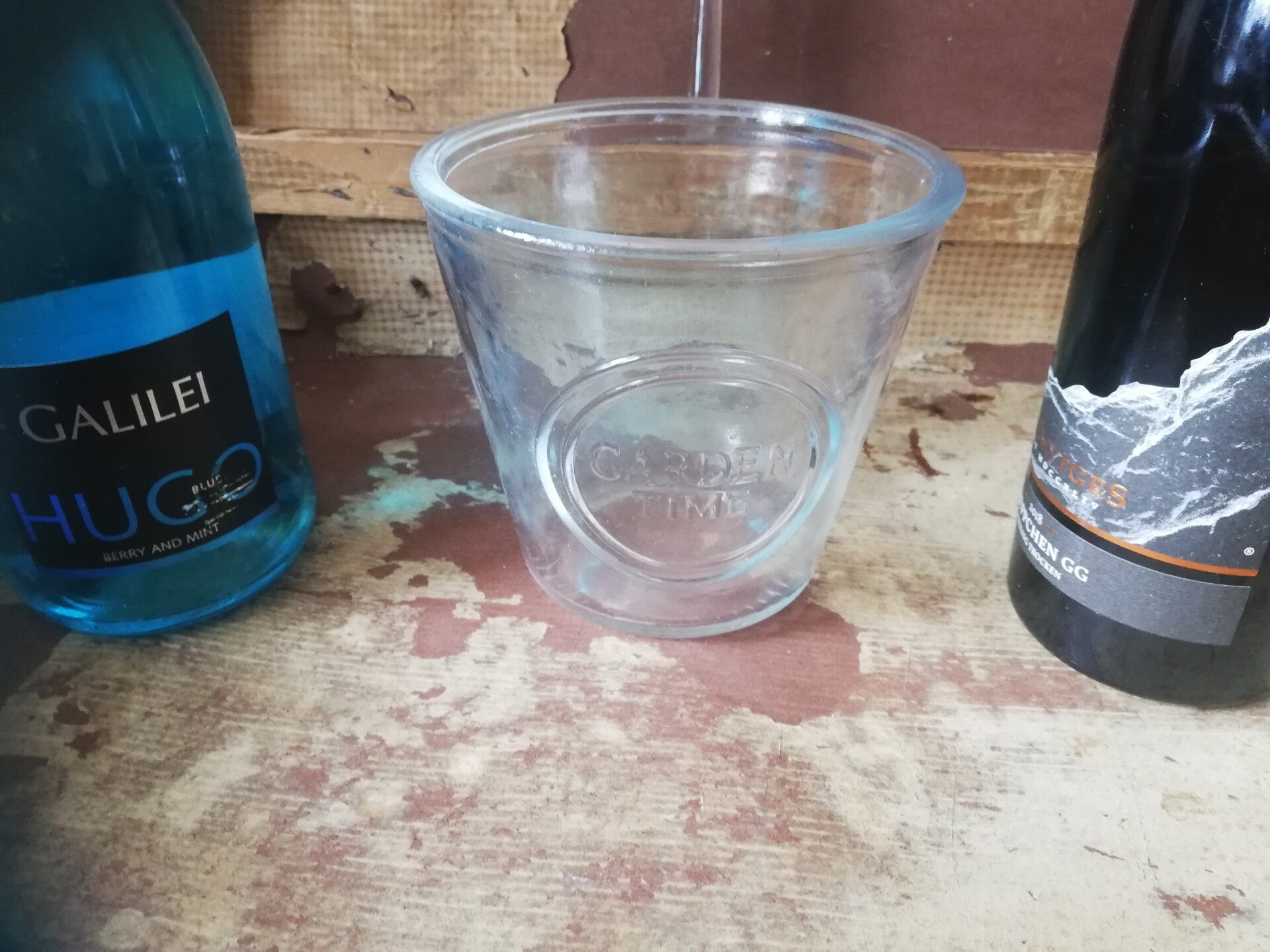 2 Mooie glazen Garden Time bloempotten. Prijs 5,00.
