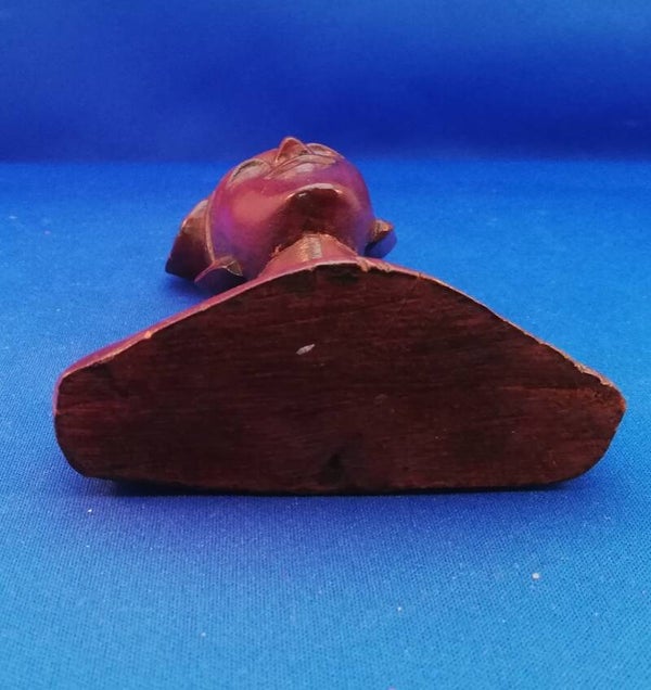 Twee houtsnijwerk beelden.Een huwelijks geschenk.Van rood/bruin hout.Hoogte is 13 cm breedte is 9 cm.Dit een gewoon echtpaar.Bieden mag.Artikelnr Beelden 21-12-001