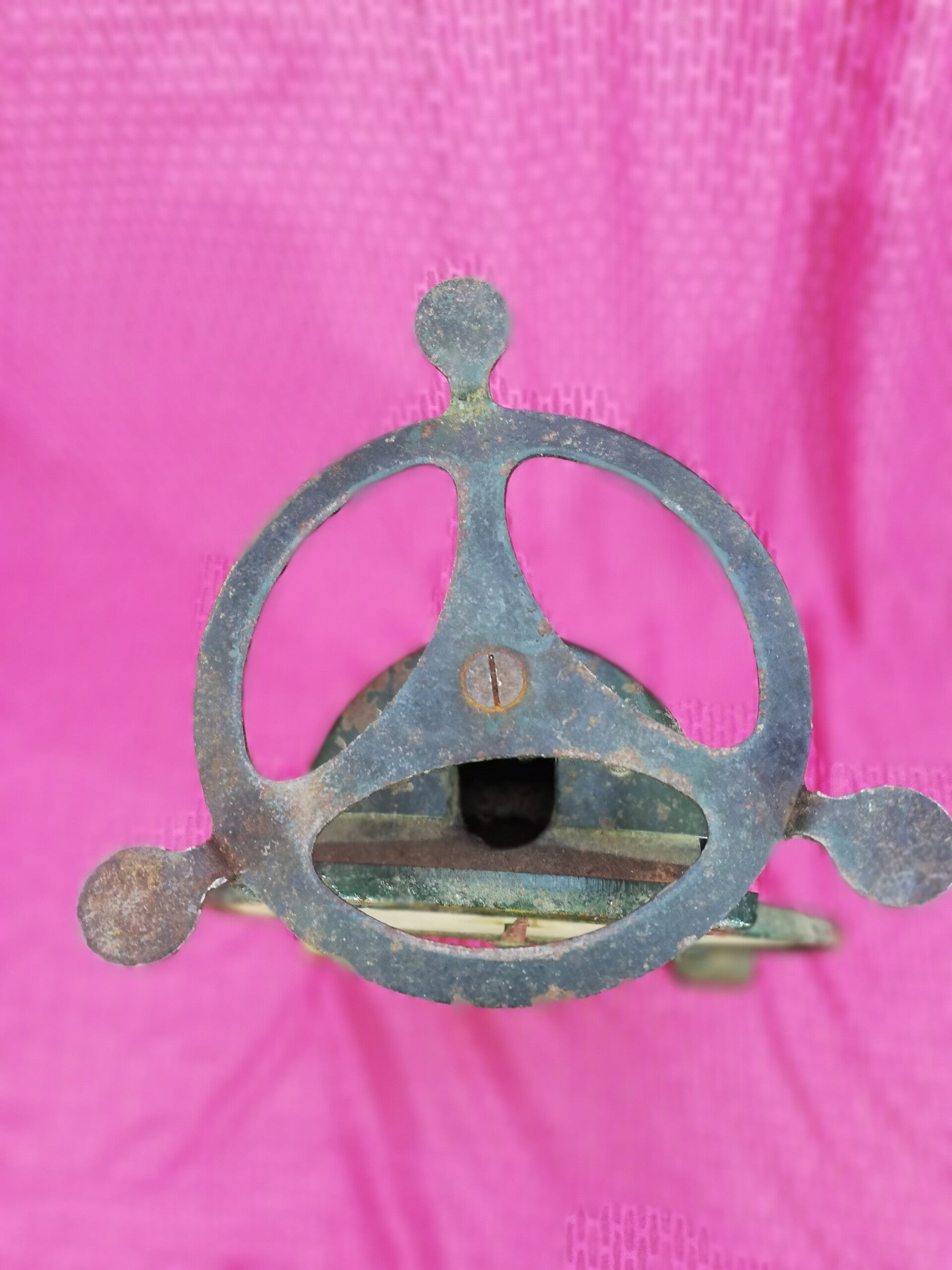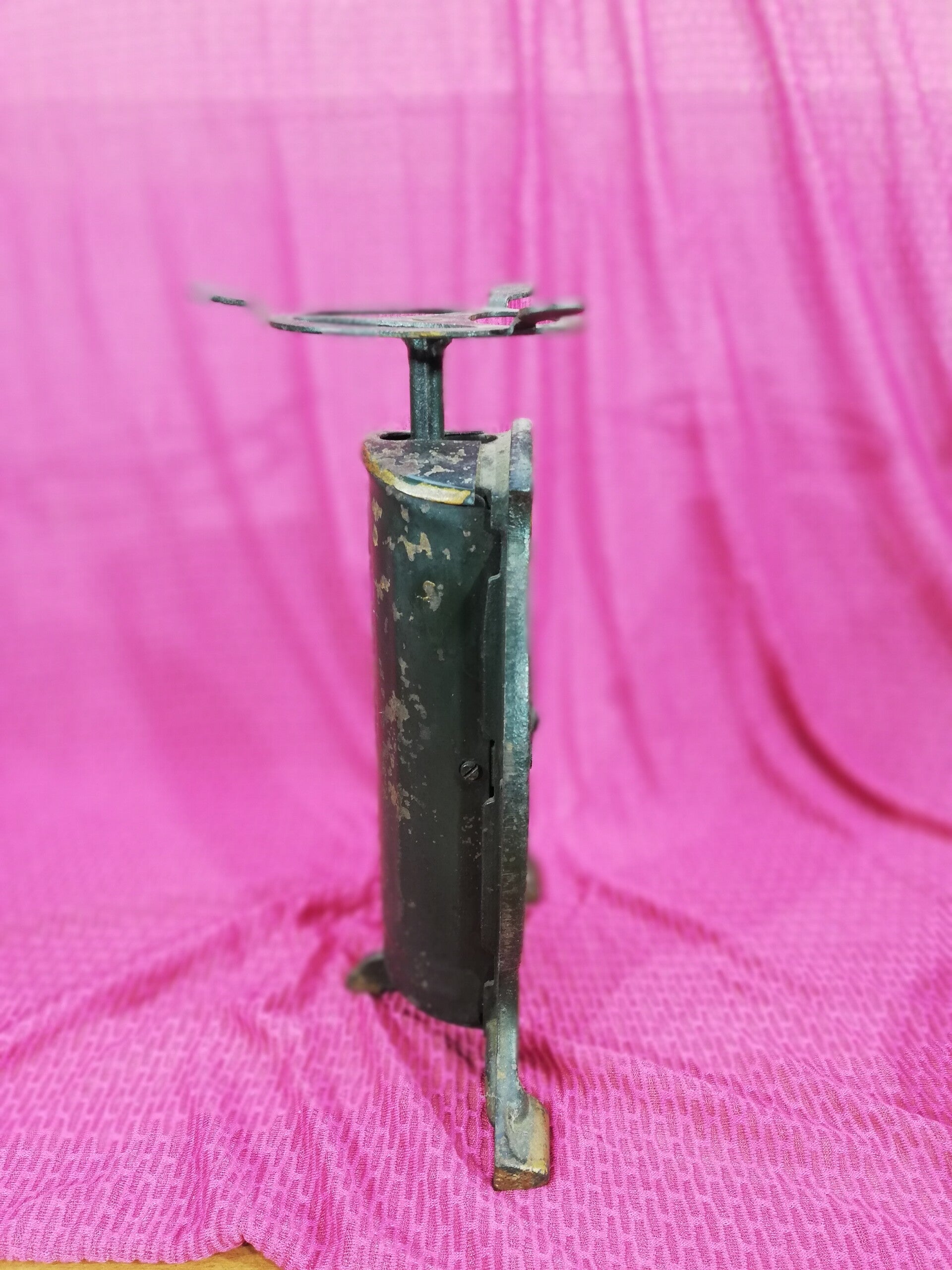 Een gietijzeren weegschaal van het merk Salter. De weegschaal heeft geen schaaltje meer.Er is iet weer te wegen de schaal op de wijzerplaat er afgeslepen door het vele gebruikt. Alleen de letters LB staan er duidelijk op.