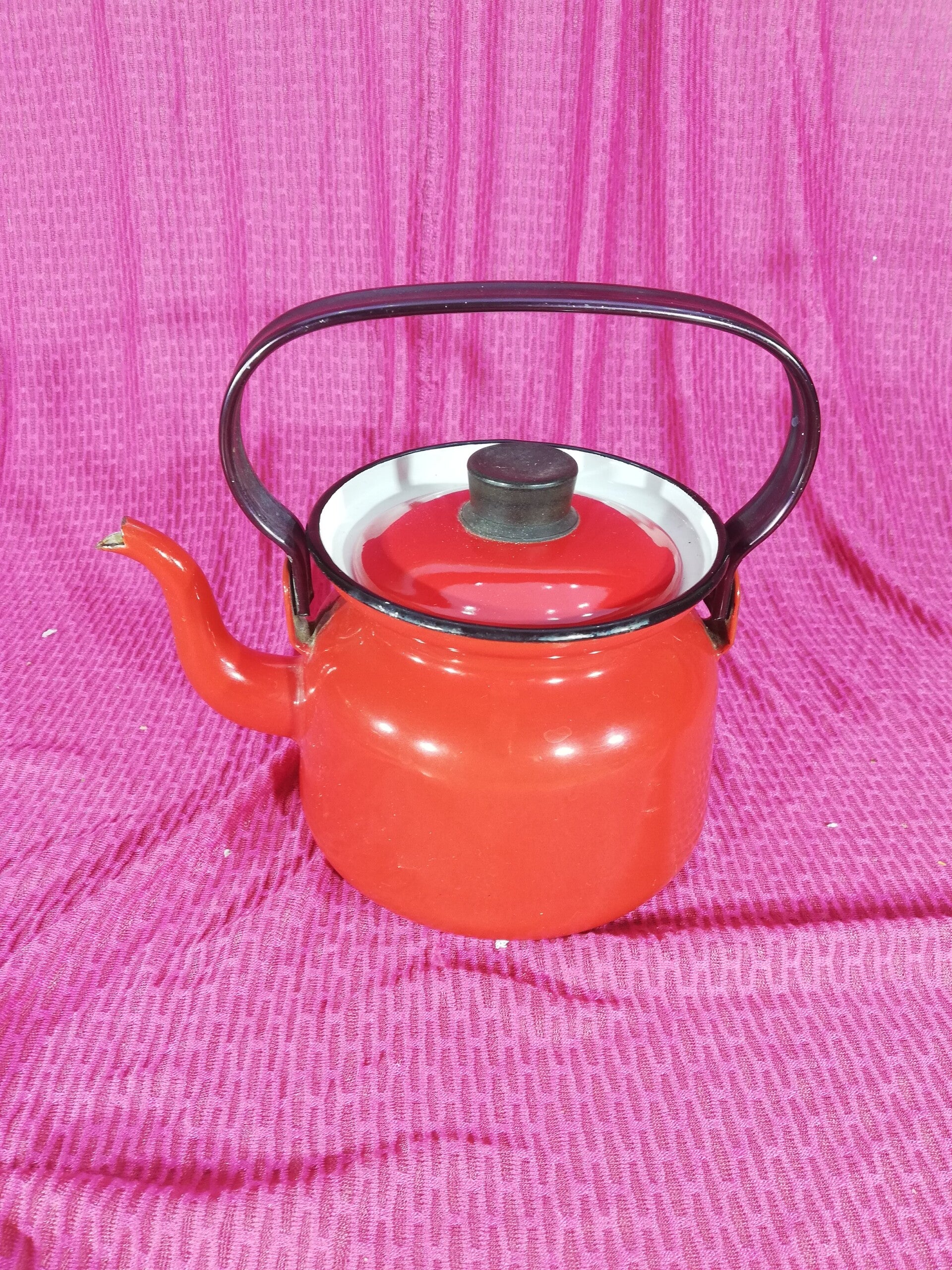 Finel rode emaillene theeketel vintage