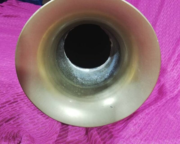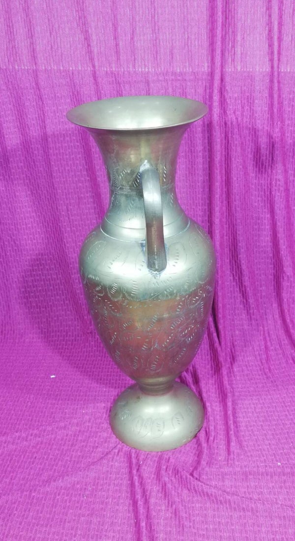 Mooi geel koperen vaas.Gewicht 1,5 maten 37.5 cm hoog 15 cm doorsnede.Mooi gegrafeerd.